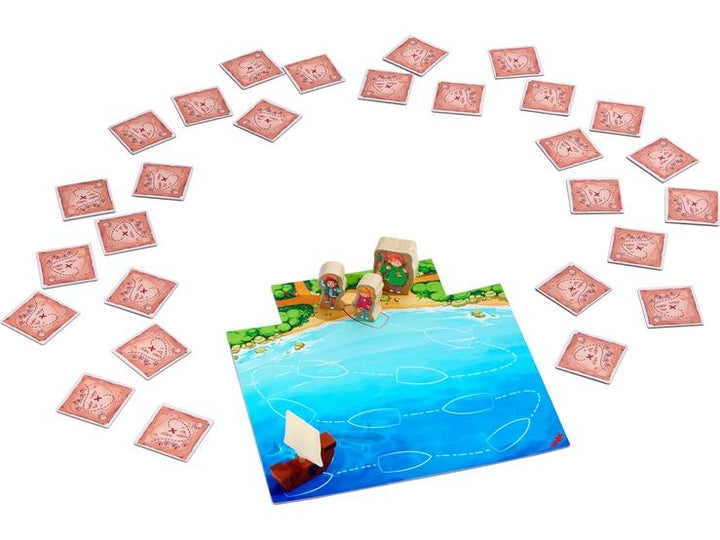 Karuba Junior is a cooperative tile-placement adventure game in which players search for treasures in the jungle on the island of Karuba with three brave adventurers. Will you manage to place the path tiles so that you reach all the treasures before the mean pirates raid the island? You need to work together and be careful of tigers that block the paths. With skill and a bit of luck, you'll be faster than the pirates! 1. Turn over tiles and build paths 2. Find the treasures 3. Be faster than the pirates and don't lose the way in the jungle