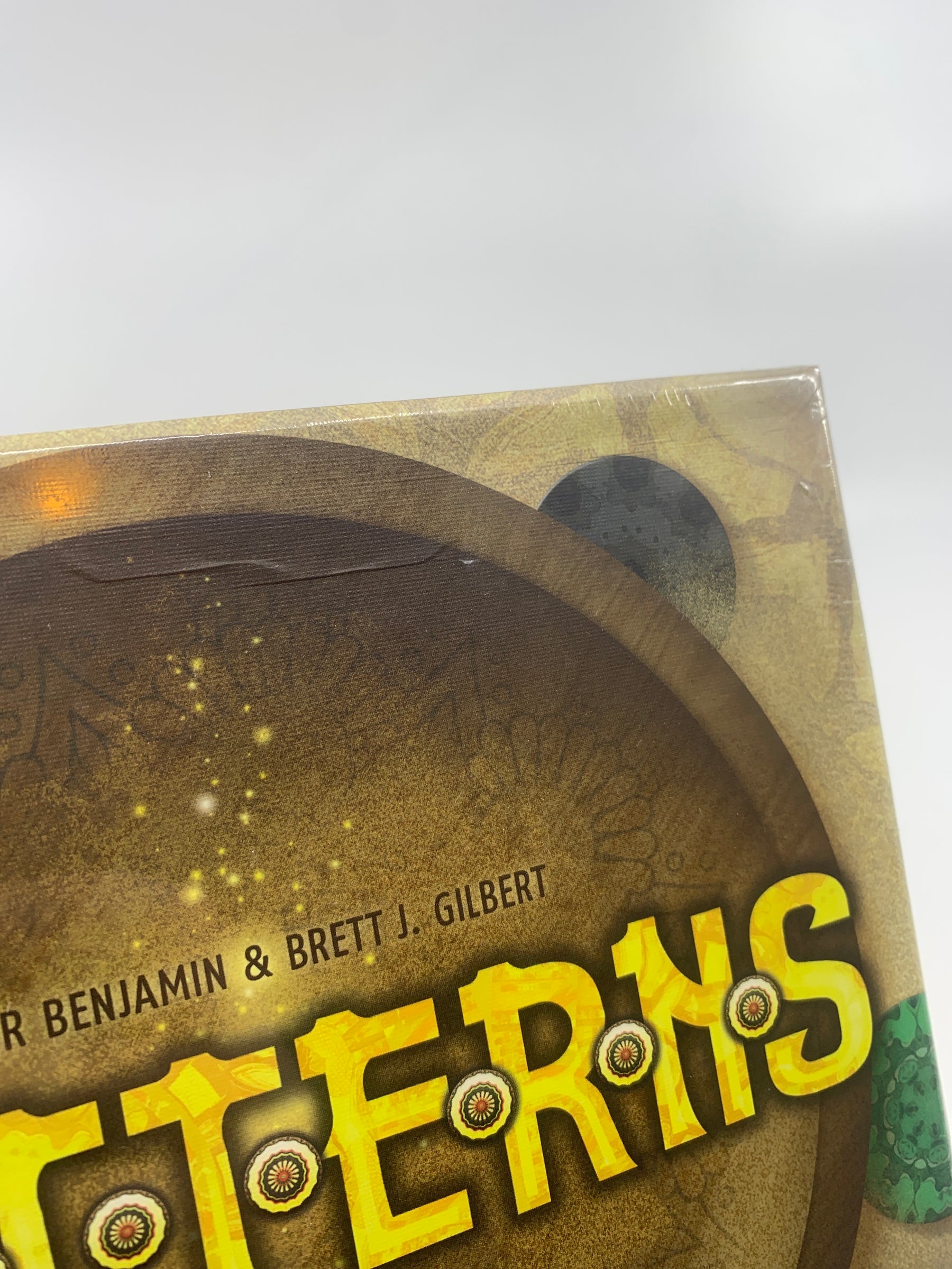 Patterns: A Mandala Game is another area-control design by Trevor Benjamin and Brett J. Gilbert. Patterns draws you in as you take turns swapping tiles from the large mandala at your table. Each player tries to mark contiguous colored areas as territory. Start by spreading the unique tea towel play mat first and creating a mandala by all but 2 out of 54 colorful mandala tiles. Whoever claims most point in the end, wins.