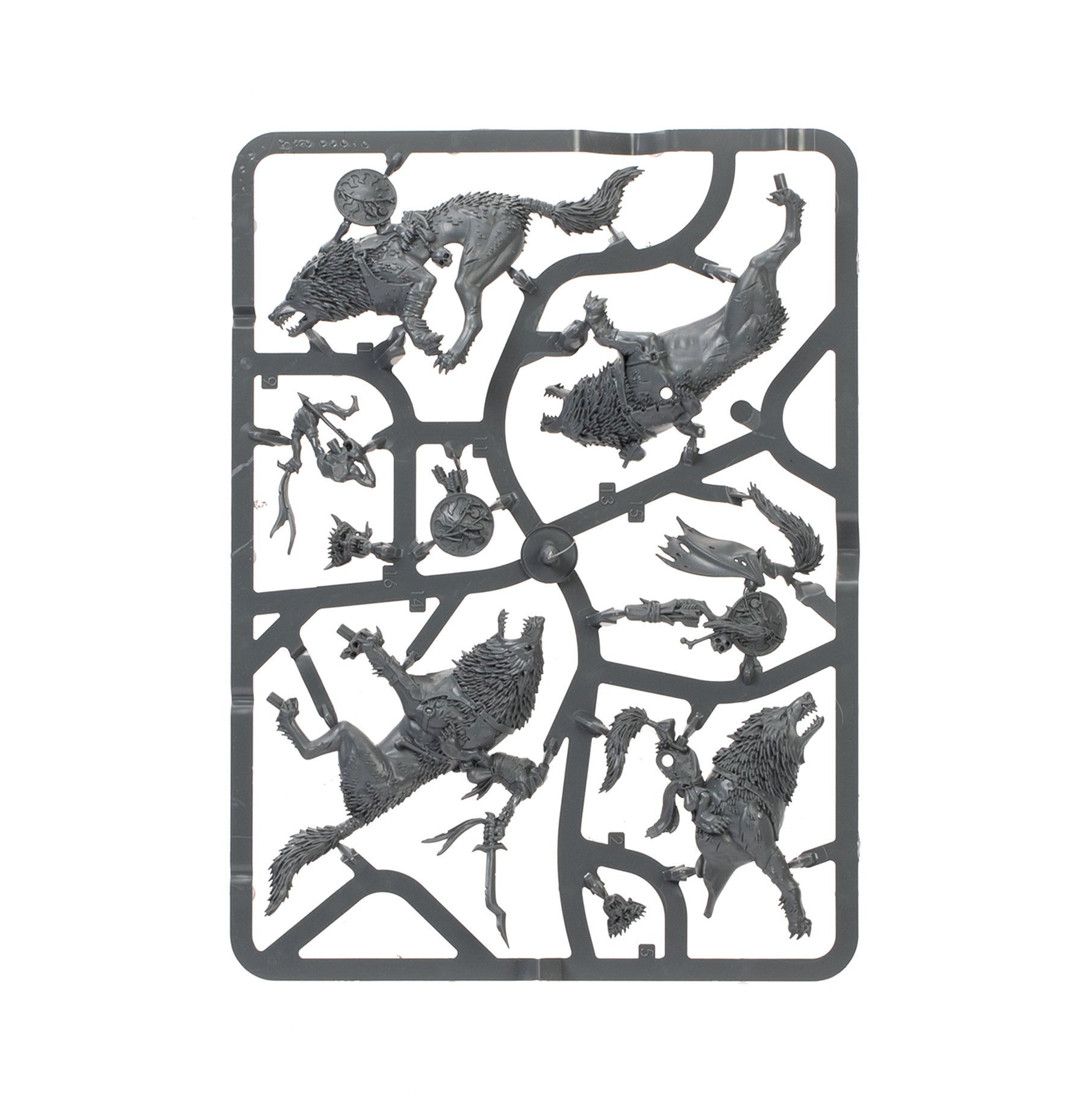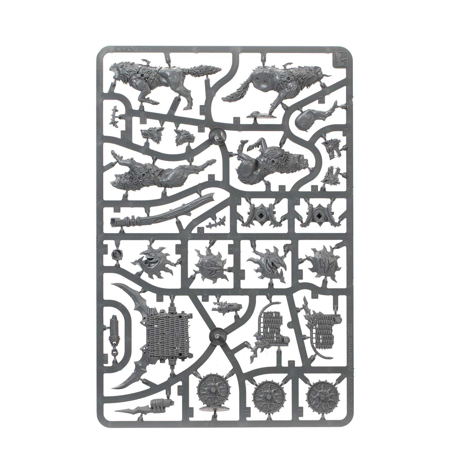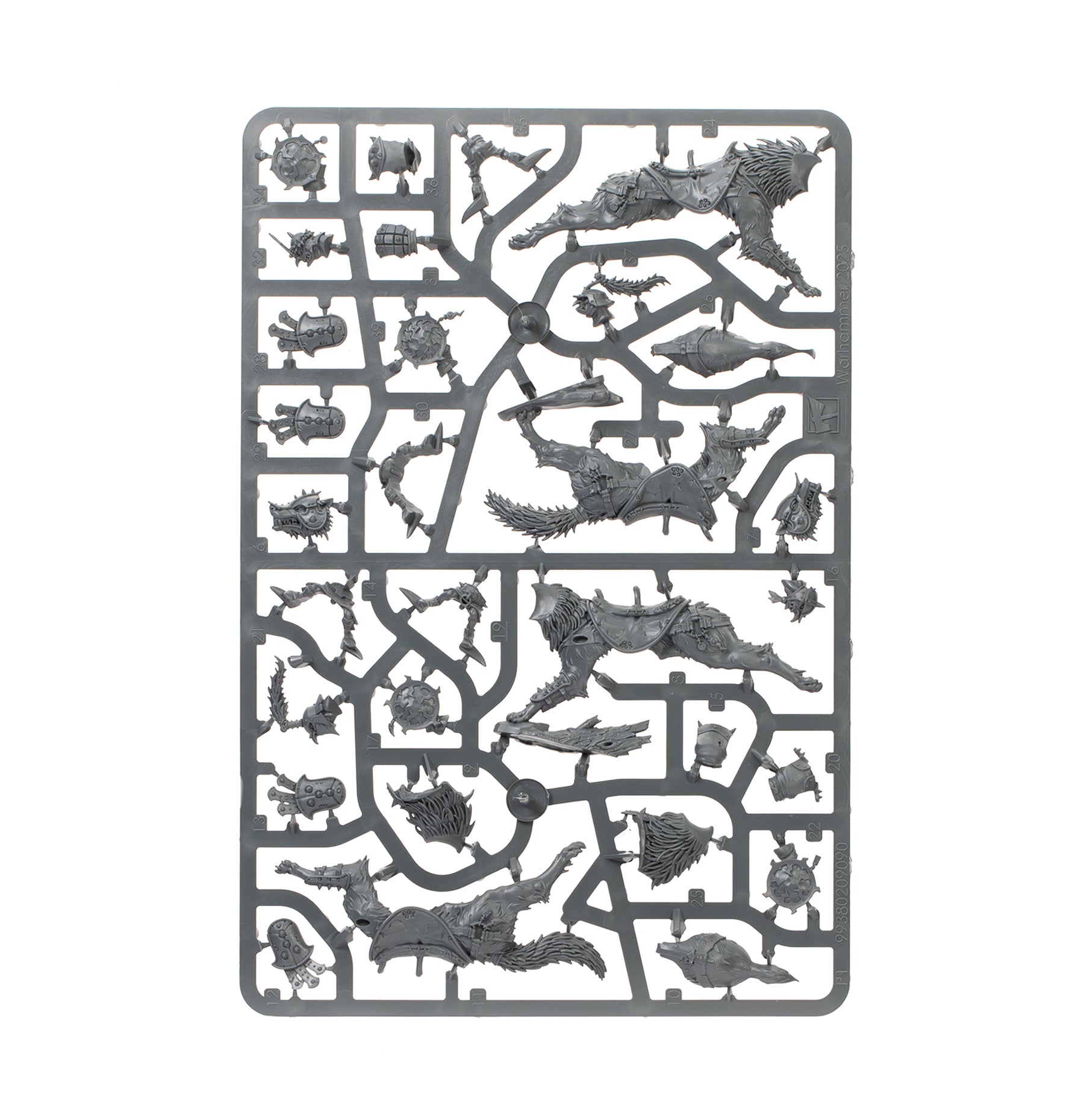 The miniatures in this kit offer a degree of customisation. The Sunsteala Wheelas have cosmetic options, including wheels, harnesses, weapons, and heads. The wolves' heads of the Snarlpack Cavalry are interchangeable, and you can build up to two optional champions for your elite mounted troops.