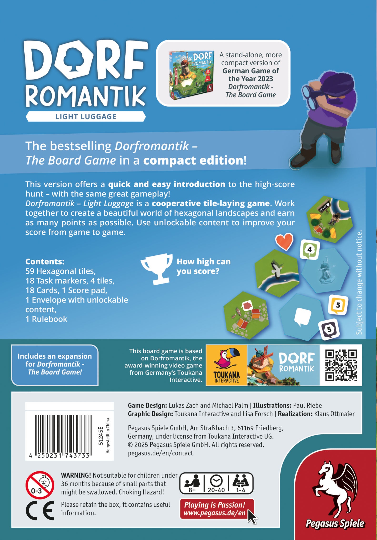 Not only is the game fun in this compact format, but Dorfromantik – Light Luggage is a perfect introduction to the world of Dorfromantik, while also offering new challenges for experienced players.