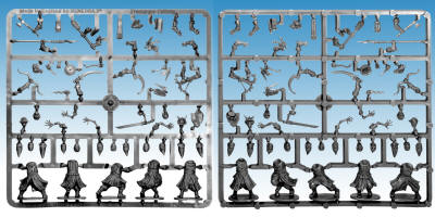 The Frostgrave Cultists box set contains enough parts to make 20 different figures. There are multiple heads, arms, weapons and accoutrements per frame, no two warbands will ever be the same.