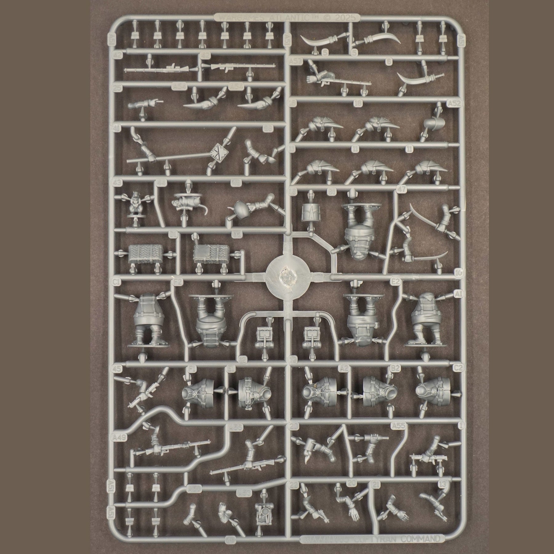 This plastic box set includes enough parts to build a complete Coftyran Command Team, including Officers, Standard Bearers, Musicians, and various support specialists, providing everything needed to lead a Coftyran force in defense of the homeland!