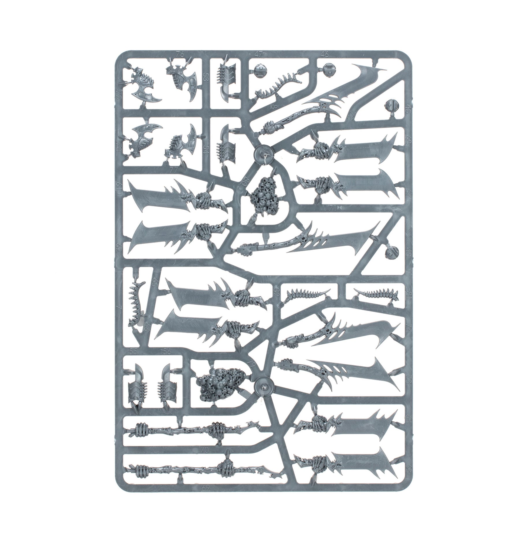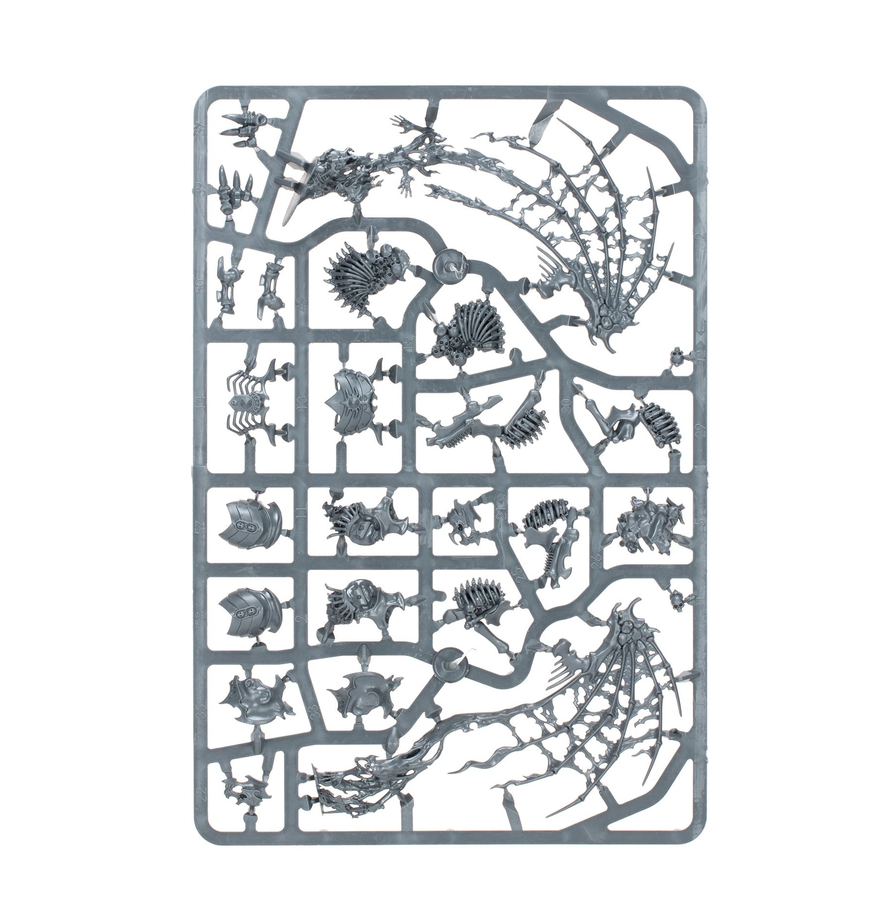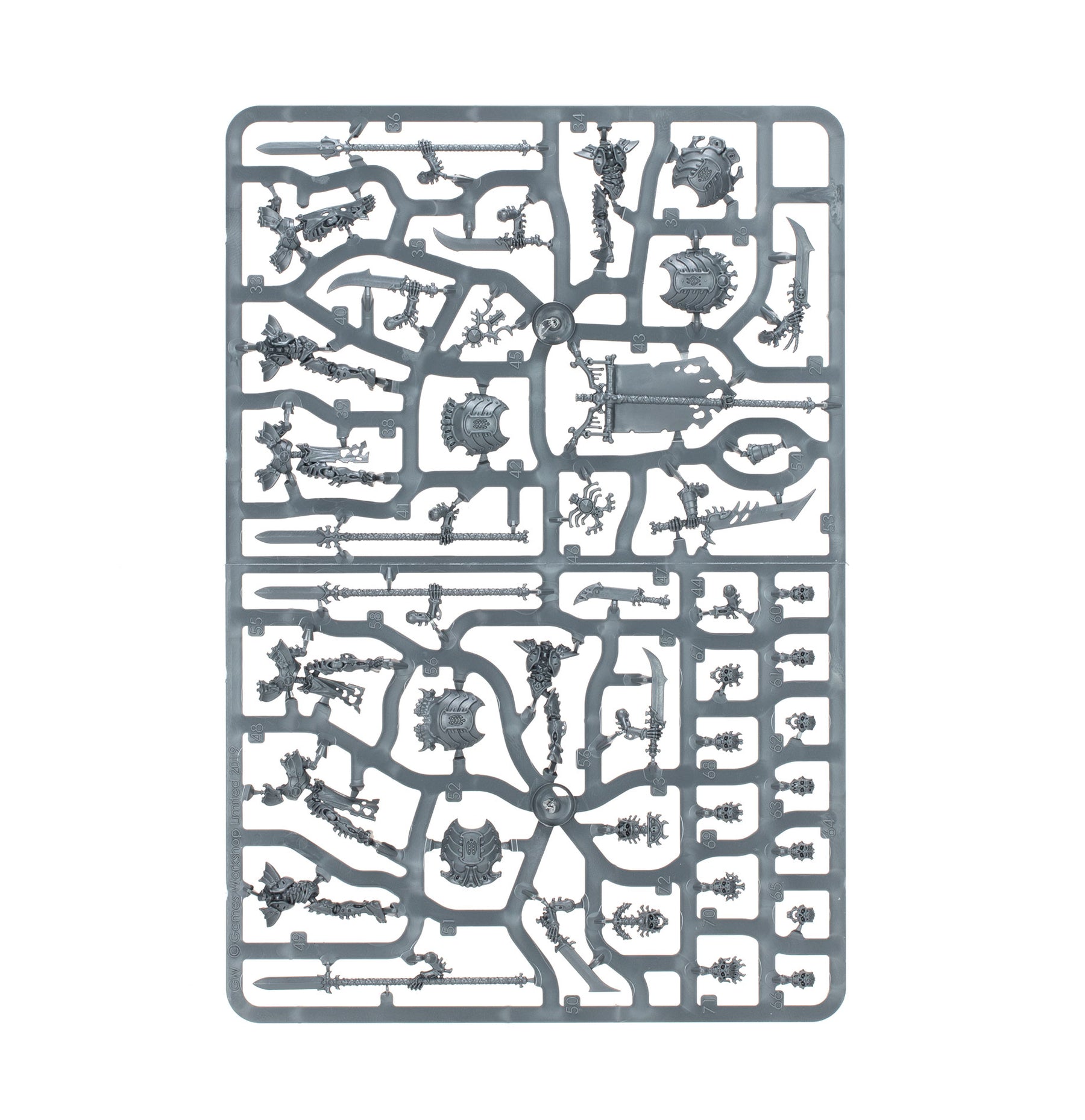The miniatures in this box are easy to customise. The Morghast Archai and Morghast Harbingers share the same frames, allowing you to build them as a mix of the two or all of one type. Each of these flying constructs can be armed with a halberd or a pair of swords – there are eight halberd blades (of four designs) to choose from, and eight pairs of swords (of four designs).