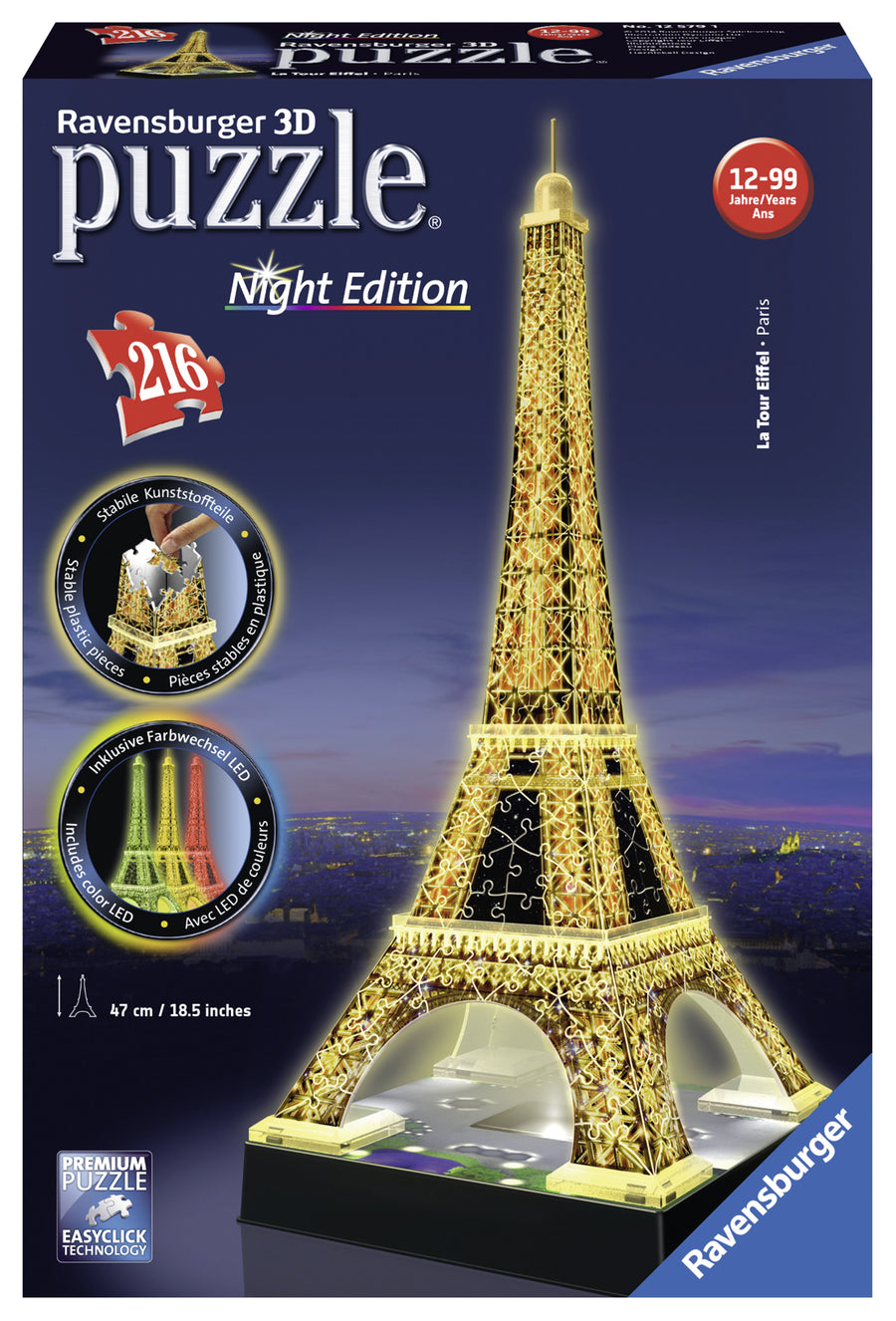 3D puslespil - Eiffeltårnet om natten (216 brikker)