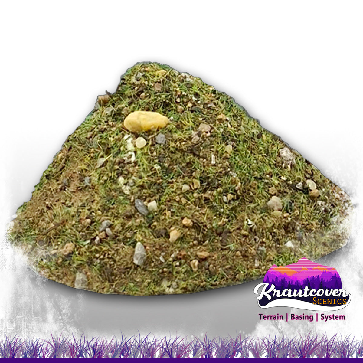 Copious Earth combines warm earth tones with finely tuned stones and a subtle green note Grass. Perfect for creating Bases from dirt roads to muddy battlefields. Also for terrain pieces, Copious Earth is your all-purpose weapon for all types of earthy soils. The mix also combines well with other Basecovers like Meadows of Purity or Kodama Woods to create even more interesting and natural landscapes and bases.