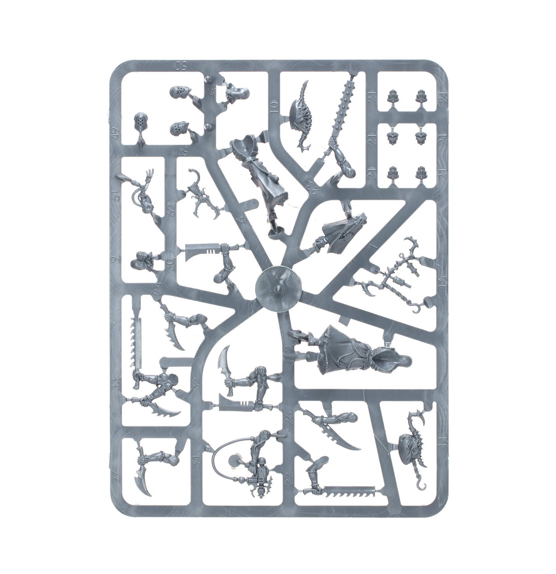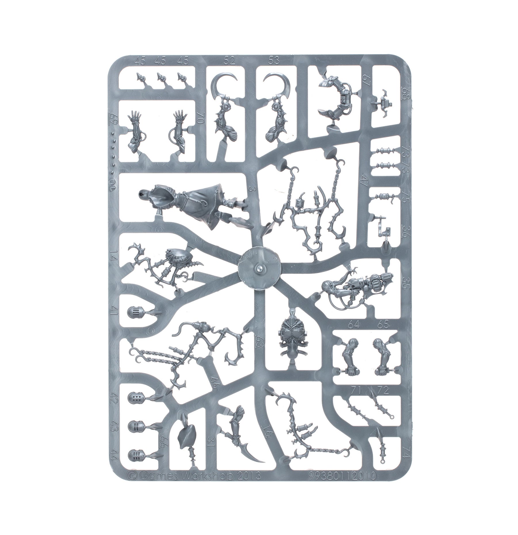 There are also parts to build an optional Acothyst who has a choice of three masks, two trophy racks, and can be armed with an electrocorrosive whip, power weapon, scissorhand, or any of the above weapons. Extra parts are included to convert Wracks into crew for Raiders and Venoms, both of which are available separately.