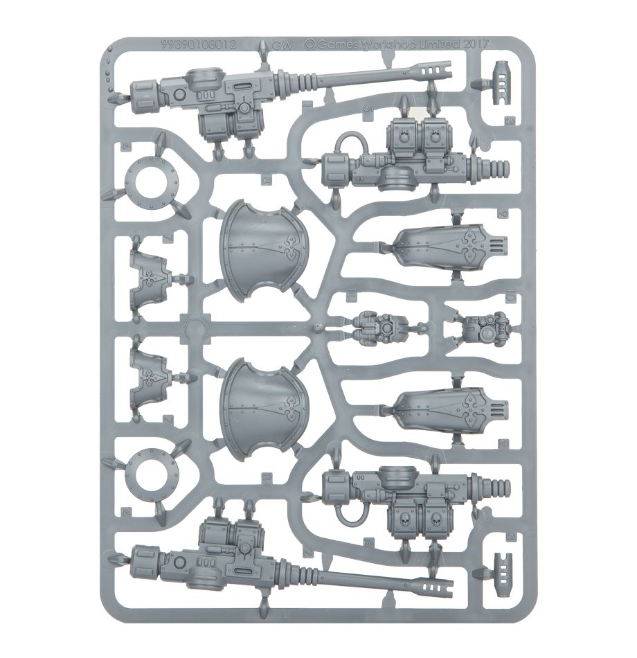 The Armiger Warglaives each have a choice of leg armour and face-plates, and can alternatively be built as Armiger Helverins. They have the following weapon options: