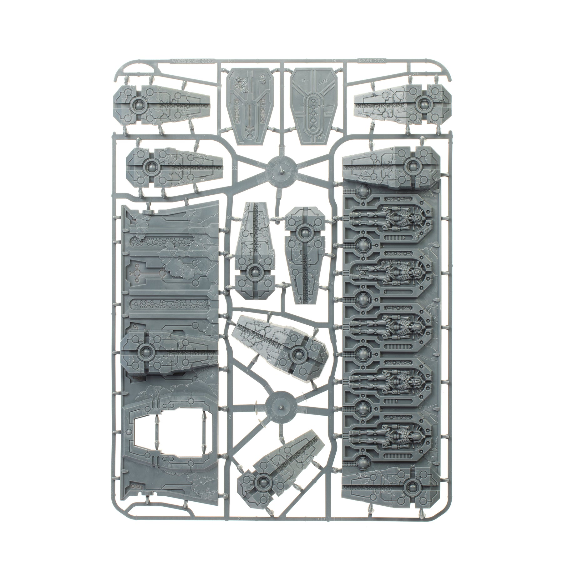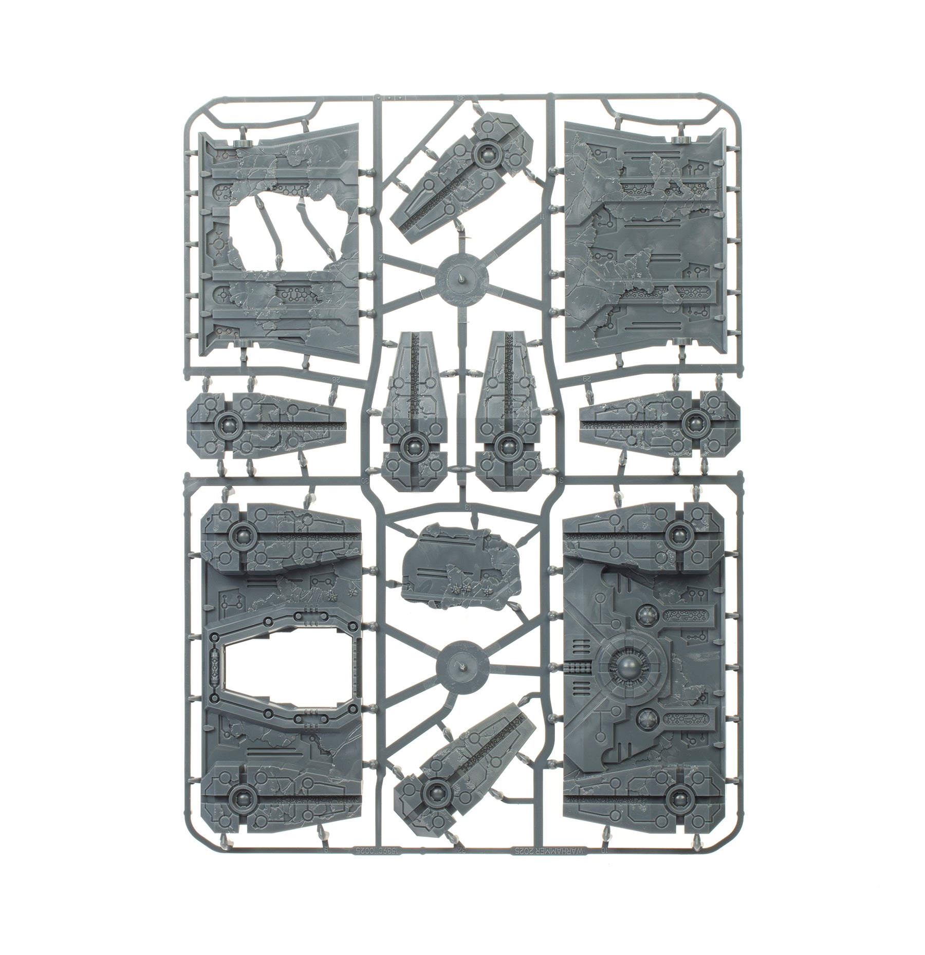 This multipart plastic kit builds 25 modular terrain pieces for use in your games of Kill Team. They have been designed to accommodate a dizzying variety of configurations. Together, they represent the twisting corridors of a Necron Tomb World – ideal for playing close-quarters games of Kill Team. You'll also find a double-sided game board measuring 606mm by 703mm, the standard size for a game of Kill Team.