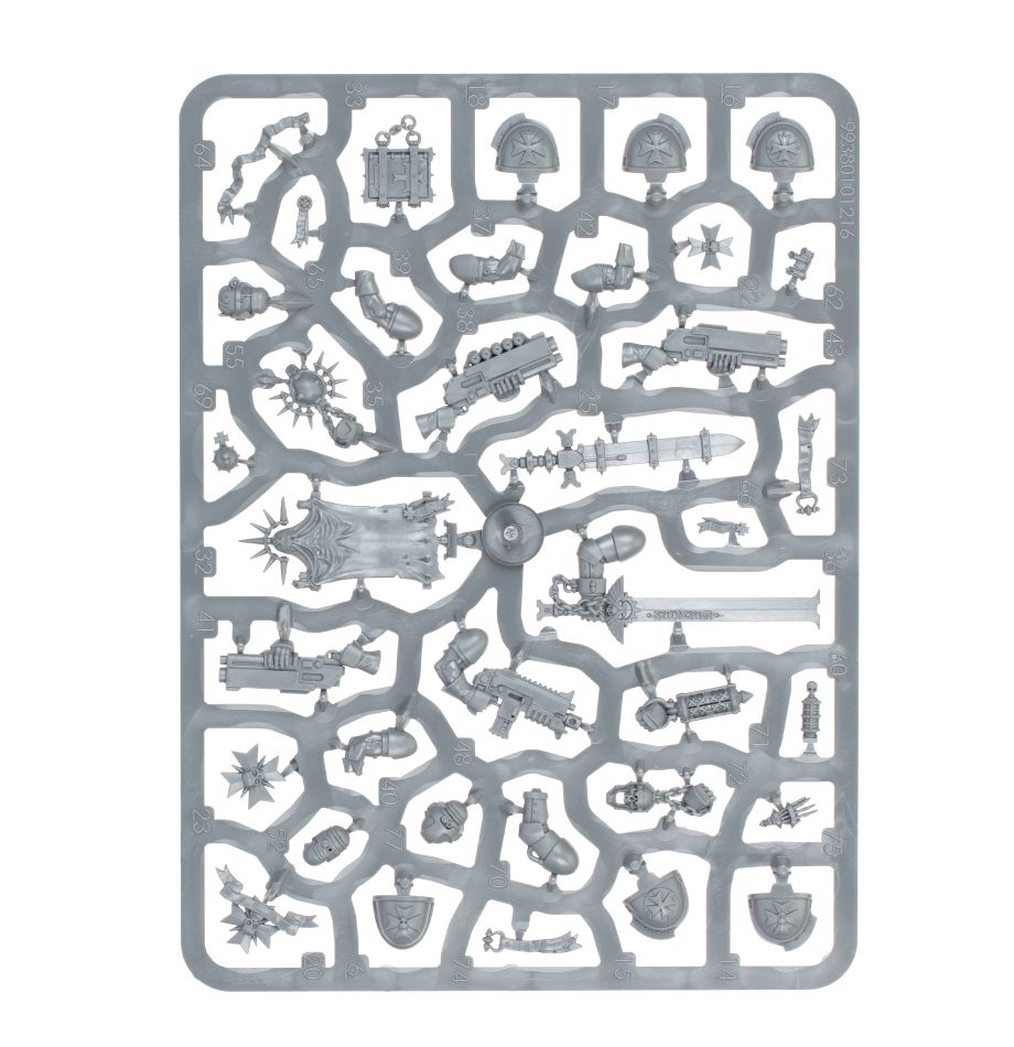 This box also includes a Black Templars upgrade frame, featuring symbols, purity seals, honorific ribbons, and burning candle stacks to give your war machines more crusading character.