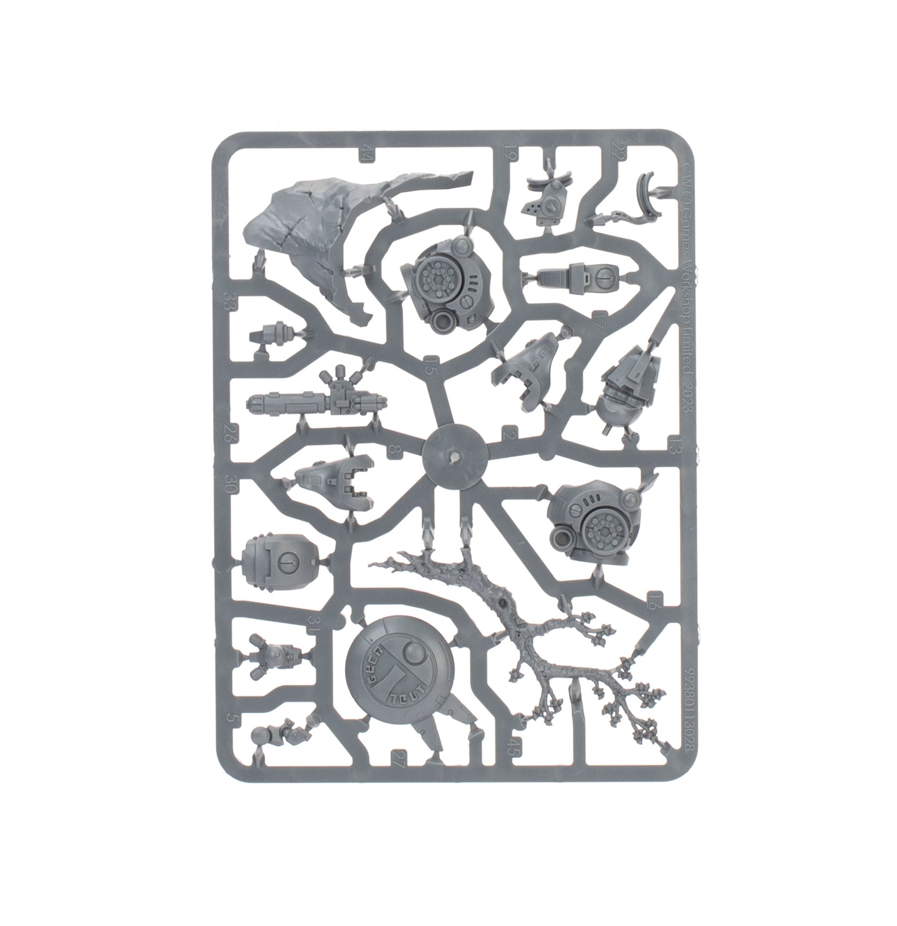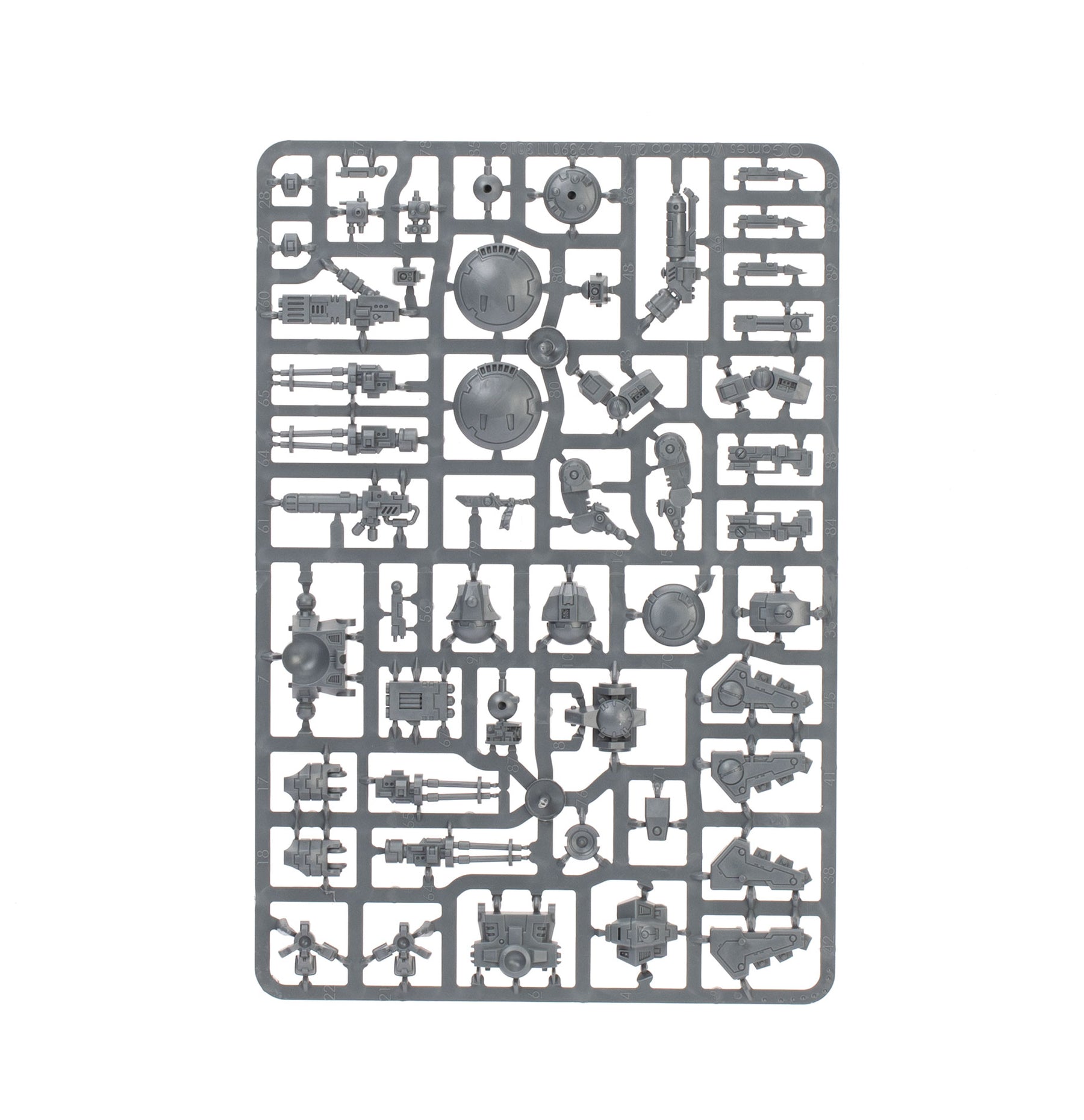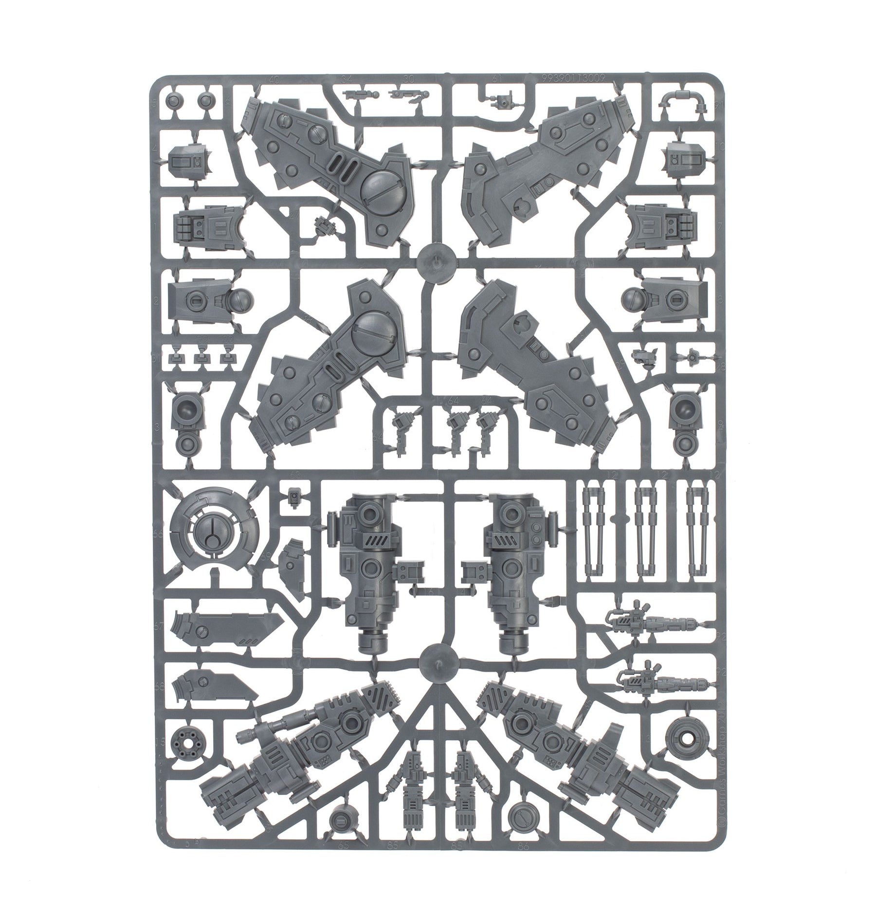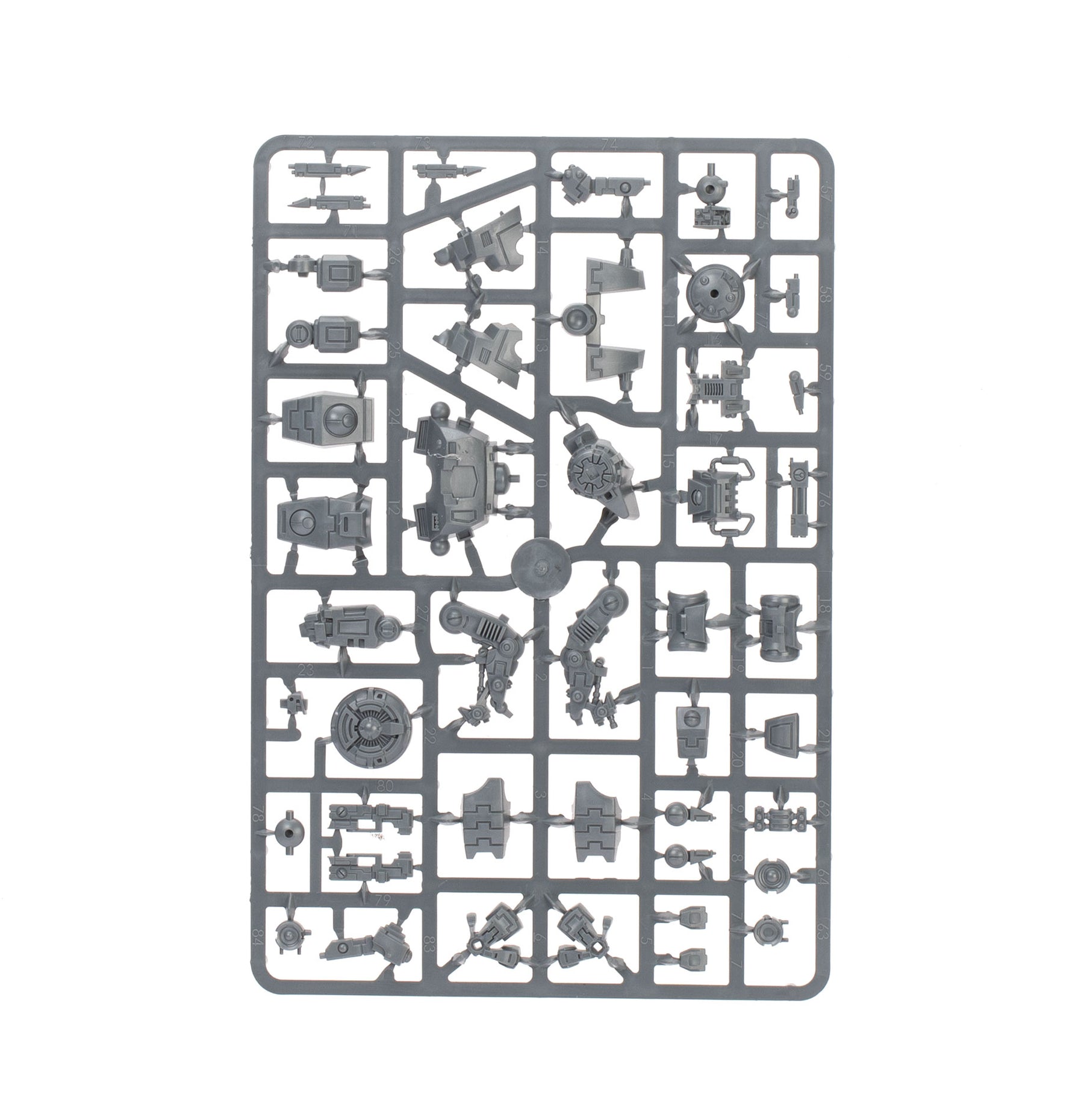 The Crisis Battlesuits can each be built on the ground or with flying stems as if just landing or taking off. The heads, knee pads, and shoulder pads are interchangeable, as are the weapons – there are four plasma rifles, three T'au flamers, four fusion blasters, four burst cannons, three missile pods, and three shield generators. The six drones can be built as up to three gun drones, up to three shield drones, and up to three marker drones. There are also parts to build an optional Shas'vre or Iridium-class XV8-02 Crisis Battlesuit.